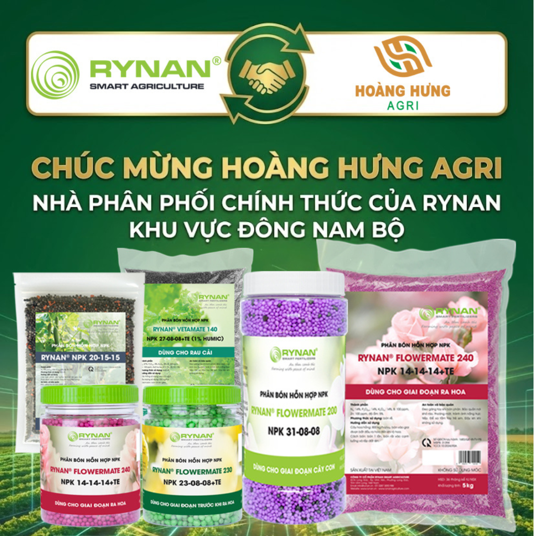 Hoàng Hưng Agri tự hào là đối tác phân phối chính thức của các thương hiệu hàng đầu Greenma, Rynan, Hợp Trí tại khu vực Hồ Chí Minh, Đông Nam Bộ. Chúng tôi cam kết cung cấp các giải pháp nông nghiệp chính hãng, chất lượng cao, toàn diện và bền vững cho khách hàng tại Việt Nam.